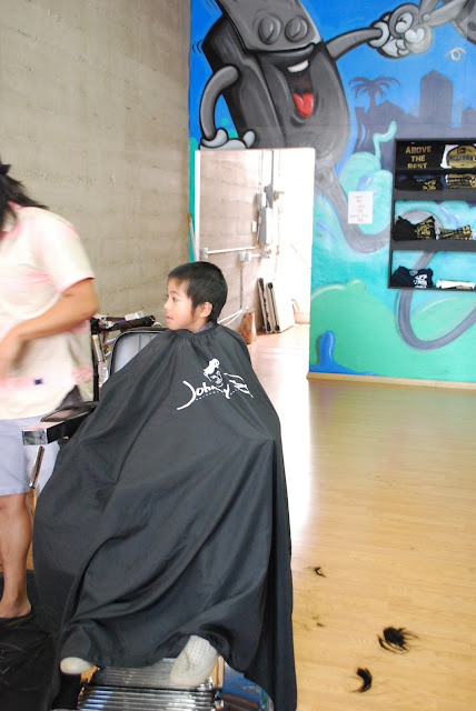 I love love love Rock's long hair! I also love my hubby, so when he would ask if we can cut Rock's hair, I gave in because I understood where PJ was coming from, like Rock's hair in his face. I didn't mind it, but Rock did. Soooo mommy lost, and I was fine with it. PJ and I came to the conclusion that Rock will get one hair cut each year, during the warm months, then I get to vast in his long locks! Although, I don't like the road getting there, because his hair does weird, not so nice things, but I just keep the end goal in mind...Til next year Rock!